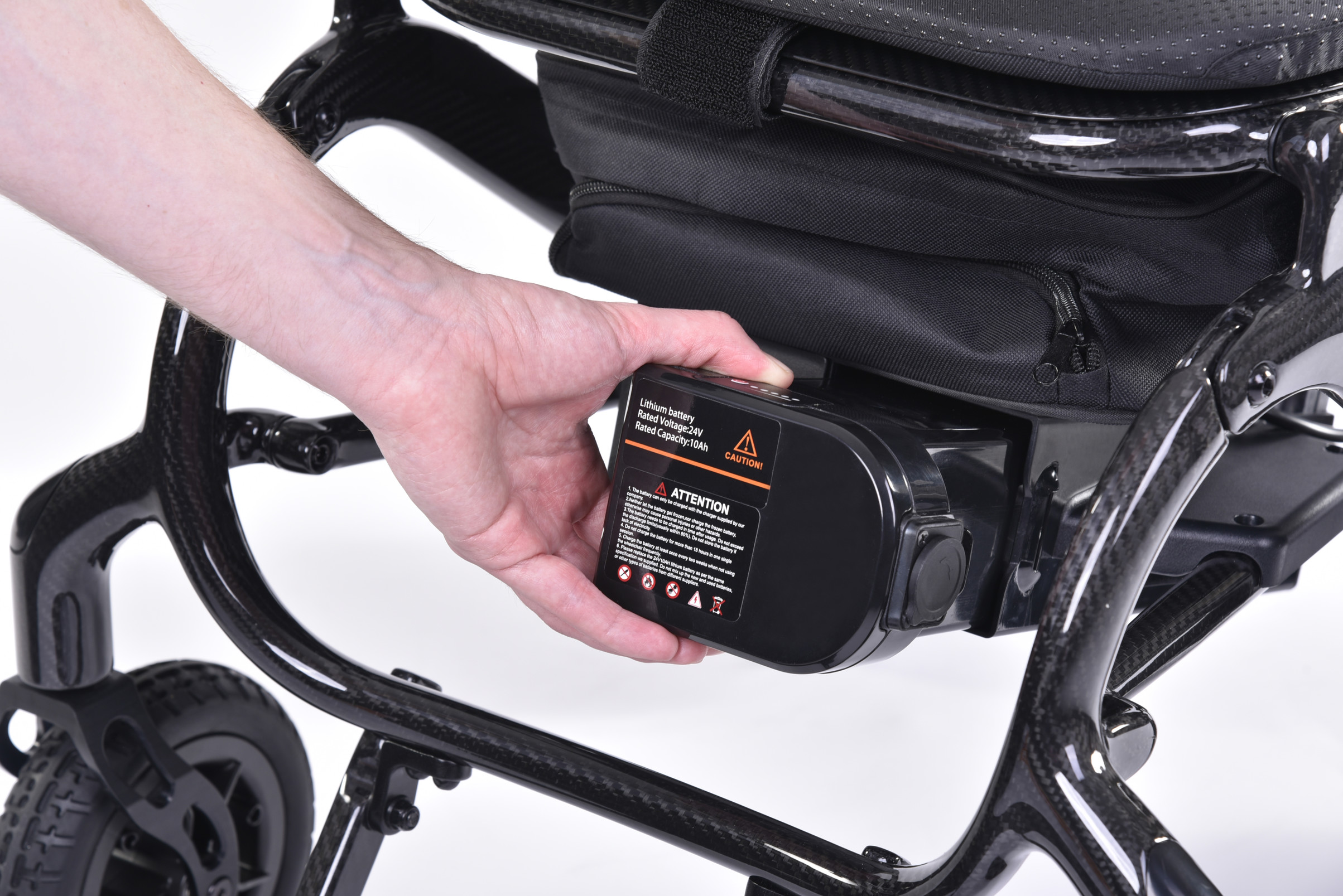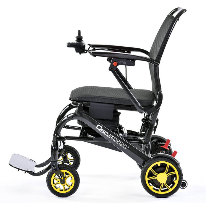 Travel lighter with QUICKIE's lightest carbon folding powerchair. Long-haul getaways. Family breaks. The daily commute. Whatever your destination, the Q50 R Carbon is your perfect travelling partner. Weighing a mere 14.5 kg (without batteries) and fabricated from premium carbon fibre, take a load off your mind (and your arms) knowing that this is an effortless powerchair to lift. Foldable in seconds, it stores snugly away in the tightest of places too (and all without removing the battery). Ready to go out? The Q50 R Carbon packs the robust, reliable QUICKIE performance to get you from A-B (or even A-Z, thanks to its extended 24 km range). And with 5 eye-catching accent colours, you'll bring a touch of style to wherever you go too.