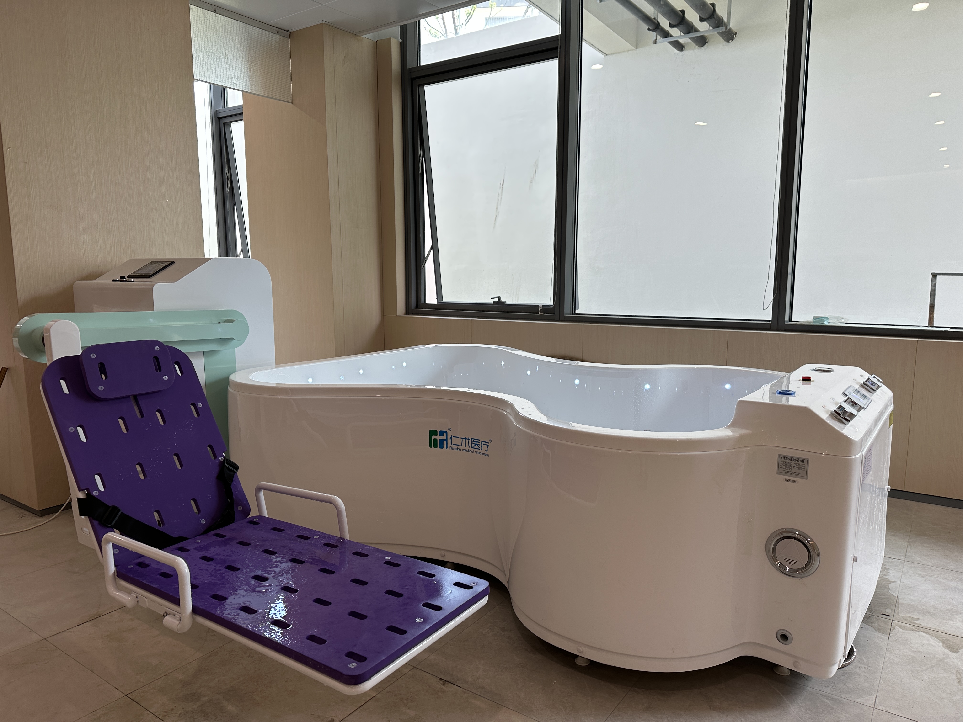 The butterfly bathtub, also known as an 8-shaped bathtub or Hubert bathtub, is named for its butterfly-shaped cross-section. Designed to accommodate most patients' post-illness body positions, it allows patients to stretch their torso and limbs within the tub. The design facilitates medical staff access from multiple angles for treatment. Combined with a rotating arm stretcher transfer system, it enables easy entry and exit for patients with mobility issues. Listed in the rehabilitation assistive device catalog and certified with CE, this product is suitable for hospitals, nursing homes, and households alike.