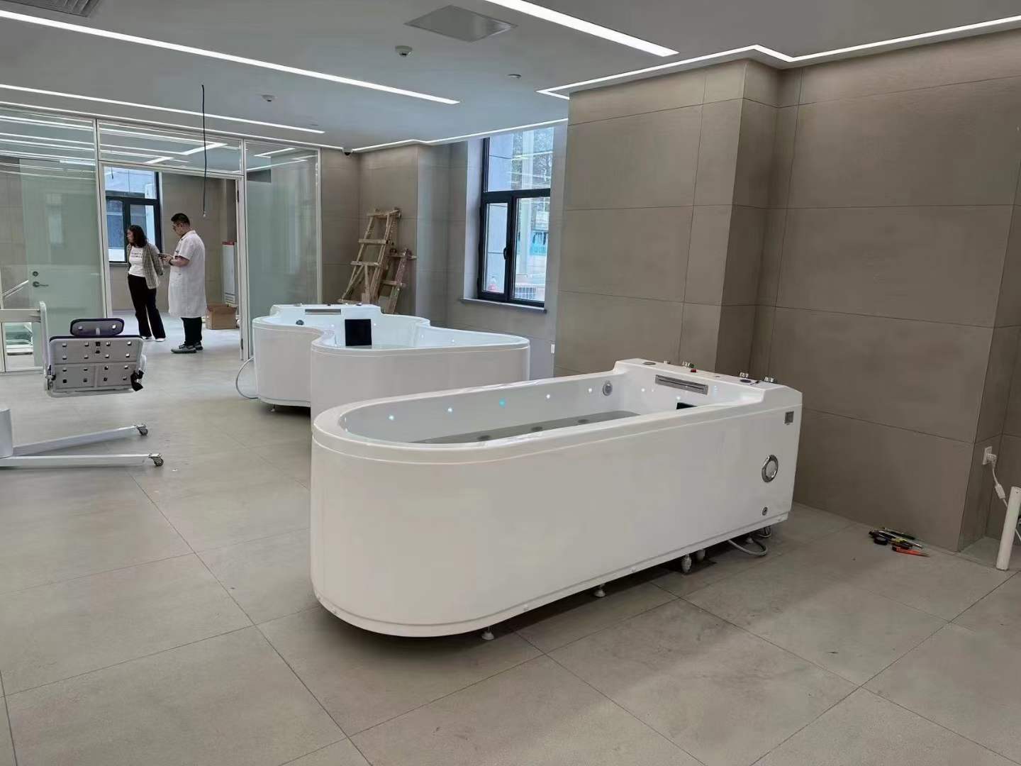 The RH-V-3 Full-body Vortex Bubble Bath with Mobile Cart is specifically designed for rehabilitation centers, hospitals, and premium wellness institutions, catering to individuals with neuromuscular disorders, post-surgery recovery, and sub-health conditions. Featuring an integrated acrylic structure, it delivers 1000L constant-temperature vortex therapy, 120 bubble chambers, light therapy music, 30 smart prescription programs, dual disinfection (ozone + UV), and water-electricity separation with dual leakage protection. Paired with a 304 stainless steel EVA reclining cart with 150kg load capacity, 600mm electric lift, foldable armrests, and lithium battery power, the device is included in China's Rehabilitation Assistive Devices Catalog.