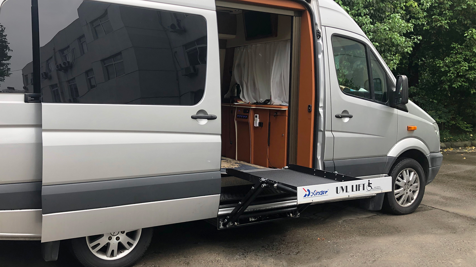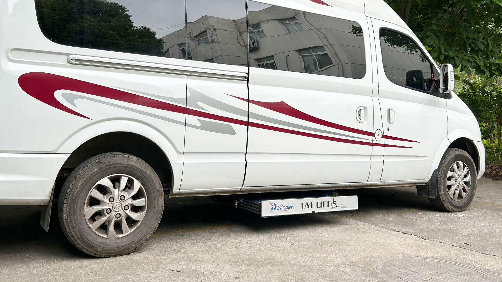 This lift is designed for van to help wheelchair occupant to get on van while seated on his wheelchair. It is installed under the chassis of van side door. It stays out of way and out of signt when not in use, so it can provide clear path and good visibility for passengers. The frame is super thin with thickness only 90mm. This lift can be operated by the wired remote control or your mobilephone, and it can be operated manually for emergency. Loading capacity is 300kg; Super thickness, only 90mm; Door interlock function; Inside safety locking device; Provides clear path and good visibility both for passengers and the dricer; Mechanical auotomatic roll stops; Warning sound during working; Powerful hydraulic system ensures smooth and stable movements; Anti-skid platform; Manual backup function; CE and EMARK certified; High-gloss polyester powder coat finish to prevent corrosion; Can be operated by the remote control or your mobile phone;