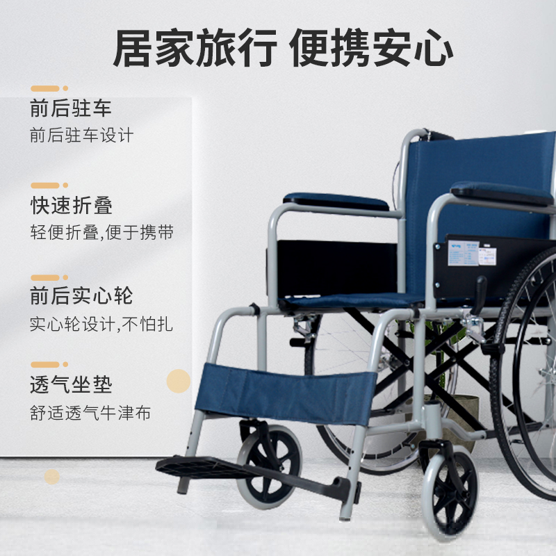 The classic model of Fosite hand-push folding wheelchair features a carbon steel frame, offering one-button folding, compact size for easy portability (able to fit into car trunks or be taken on planes), flexible maneuverability (suitable for narrow spaces), and comfort and safety (breathable seat, dual brakes, adjustable components). It is an auxiliary mobility tool suitable for the elderly, patients with mobility impairments, and individuals in recovery who require stable support. Equipped with basic adjustments, handbrake, and toilet seat, it can meet various needs in daily shopping and walking, medical rehabilitation, long-distance travel, and other scenarios.