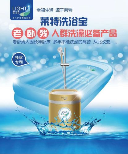 洗浴寶:專為老、臥、殘、孕人群設(shè)計(jì),改變傳統(tǒng)擦洗模式,感受淋浴帶來(lái)的舒適。 安全:洗澡機(jī)內(nèi)部裝有蓄電池功能,可斷電使用。 方便:不用移動(dòng)使用者,在自己睡覺(jué)的床上解決洗澡。洗澡床可折疊,占地小,一個(gè)人就可以操作。 衛(wèi)生:用流動(dòng)的水洗澡,洗頭、洗臀不會(huì)二次污染。 成本:每天只需1度電,徹底清潔全身。 專利證書(shū)產(chǎn)品,國(guó)家級(jí)檢測(cè)報(bào)告,CE認(rèn)證,獲得2018中國(guó)國(guó)際福祉博覽會(huì)誒加創(chuàng)新產(chǎn)品銀獎(jiǎng)