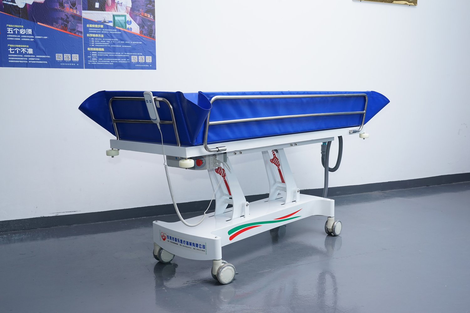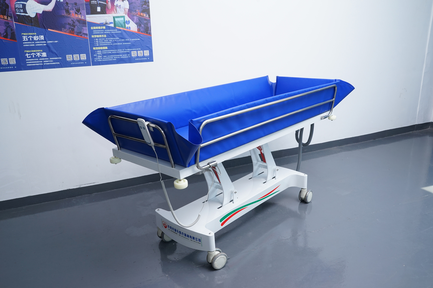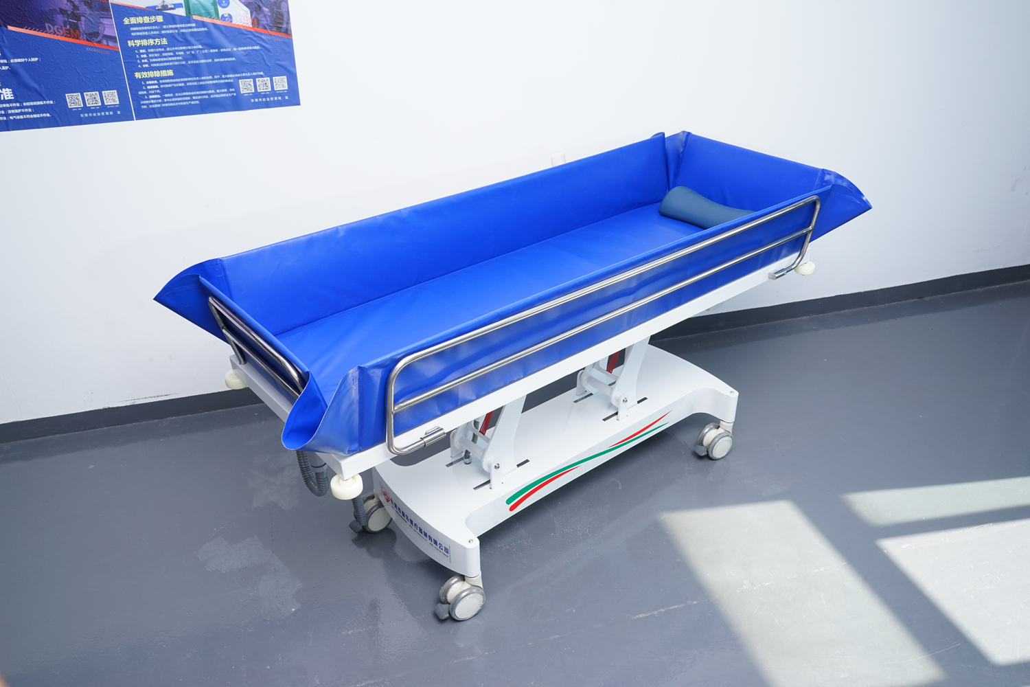 1 功能 采用進口24V/800KG推力特種防水電機,平穩(wěn)整體升降。電源為24V/4.4AH高效節(jié)能環(huán)保電池。護工操作簡單,調(diào)節(jié)到浴者舒適體位。 2 床體 床 架:高級304#不銹鋼、冷板、冷管; 連接件、緊固件、旋轉(zhuǎn)件:304不銹鋼材質(zhì); 表處理:整體表面戶外防水烤漆處理;(冬天觸摸床體不冰涼) 防 護:床體四角均安裝3寸防撞輪。 3 規(guī)格參數(shù) 浴 槽:采用高韌性環(huán)保皮劃艇料