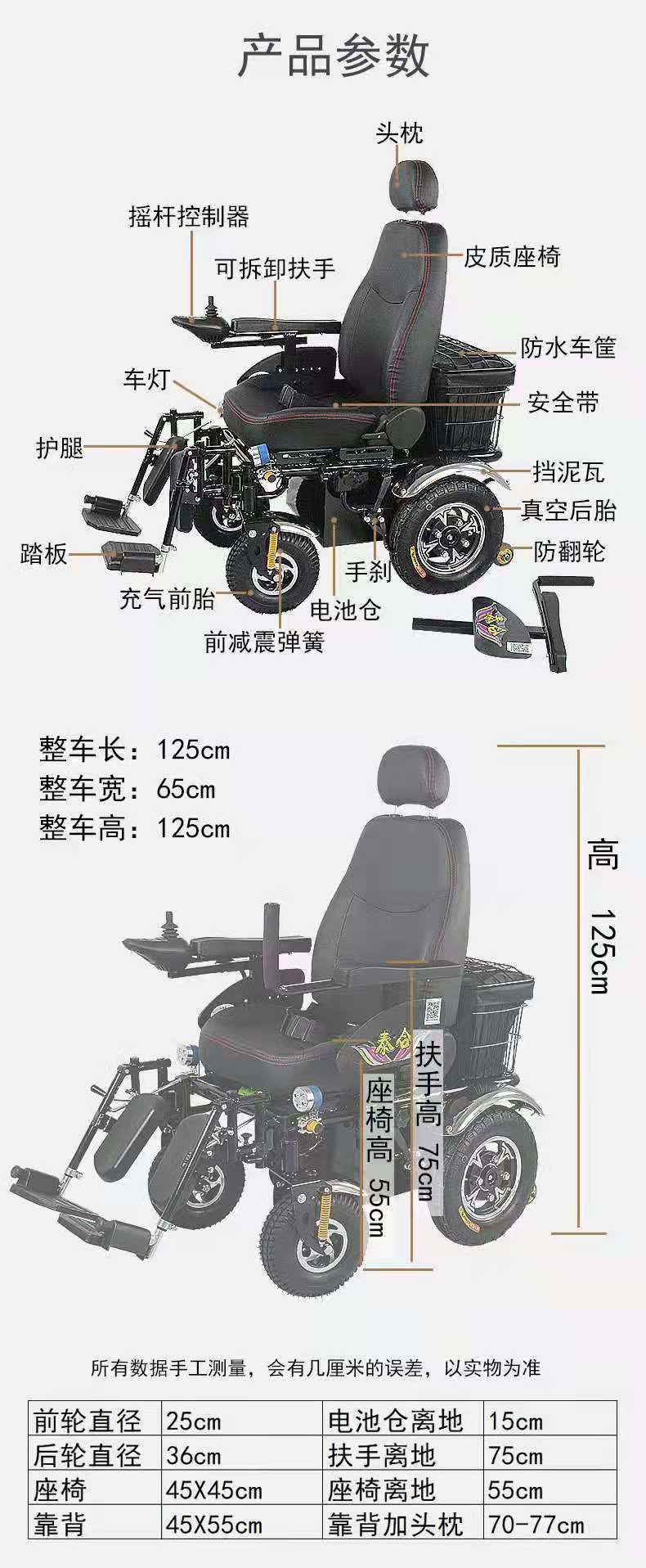 雙減速齒輪電機驅(qū)動,噪音低,動力強勁;大直徑充氣前輪,后輪鋁合金真空輪胎,兼具轉(zhuǎn)向靈活和超強越野性能;加厚豪華坐墊,透氣舒適;前后一體減震 減震性能卓越 電磁剎車斷電剎車系統(tǒng)。適應(yīng)人群 意識較差、行動不便,單手有正常的抓握能力(左右手均可),活動范圍較小的用戶,尤其適合偏癱病人。適合室內(nèi)或者室外平坦或者較差硬化路面使用,可爬大坡。