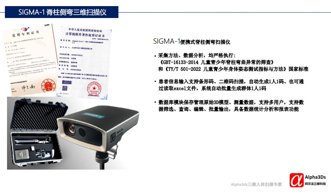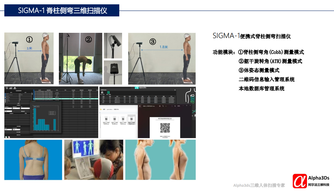 阿爾法三維科技是專注于三維人體掃描技術(shù)的科技企業(yè),致力于三維人體掃描的硬件軟件開發(fā),產(chǎn)品擁有全部自主知識產(chǎn)權(quán),涵蓋核心算法,采集控制,結(jié)構(gòu)和外觀設計等;阿爾法擁有20年豐富的三維掃描和數(shù)據(jù)應用經(jīng)驗,服務于人體工學前沿近70家客戶,涵蓋4大領(lǐng)域:①運動生物力學和生命科學,如運動體態(tài)分析、基因表型組研究;②康復疾病預防,如康復器材開發(fā),職業(yè)病預防;③人機工程,如汽車、飛行器設計;④服裝設計,如量身定制
