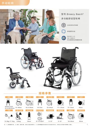 Basix2 是一款多功能舒適型輪椅,車(chē)架采用高強(qiáng)度航空級(jí)別鋁合金材質(zhì),重心、座高等多項(xiàng)可調(diào),同時(shí)可選配多種配件增加舒適度,其座背墊采用阻燃面料,符合國(guó)際生物相容ISO 10993-5標(biāo)準(zhǔn),面料和內(nèi)層海綿防火,符合EN1021-1/-2標(biāo)準(zhǔn)。