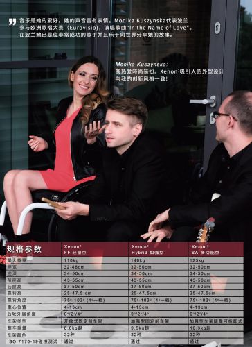 Xenon2 FF 緊湊隱蔽交叉桿設(shè)計,有同剛性車架一樣的前部空間,車身采用炫酷、干凈、流線型設(shè)計; Xenon2 HYBRID 車架雙管設(shè)計,強(qiáng)度可媲美剛性車架,最大承重可達(dá)140kg. Xenon2 SA 強(qiáng)化型骨架搭配可拆卸腿靠,方便轉(zhuǎn)移進(jìn)出輪椅,緊湊式折疊機(jī)構(gòu)方便出行收納存放。