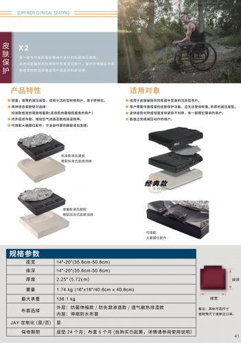 JAY X2 是一款輕量,減薄的減壓座墊,使用戶活躍型輪椅用戶,易于轉(zhuǎn)移位。