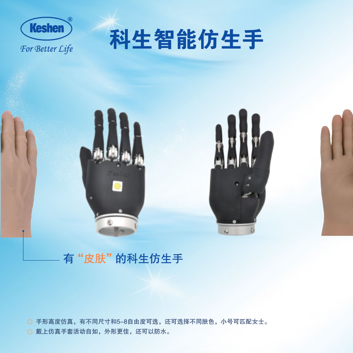 ◎從2011年科生推出智能仿生手填補了國內(nèi)空白,經(jīng)多次升級換代,滿足截肢者不同需求?!蚴讋?chuàng)主動屈腕智能仿生手?!蚩沙直胶庵悄芊律邸!蚓哂?至8通道肌電信號識別和智能控制系列產(chǎn)品,使截肢條件差的傷殘人和高位截肢者都能自如控制智能仿生假肢。◎科生智能仿生假手高度仿真,有各種不同尺碼,小號可以與女生十分匹配?!虬惭b方法與普通肌電手相同,非常方便。◎首個通過國家標準檢測。◎戴上仿真手套活動自如。