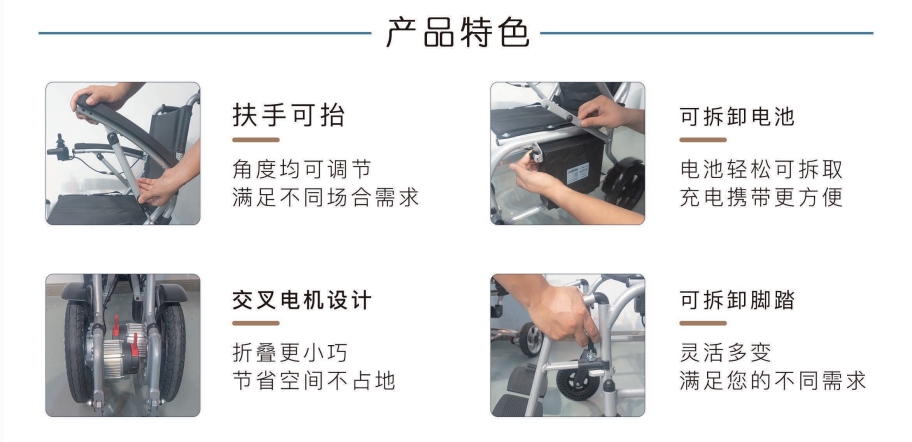 1、鋁合金車身,凈重17公斤 2、快拆式腳踏,方便上下車、移位 3、收合簡單,免彎腰,可放后備箱 4、專利防后傾輪,二段式設(shè)計(jì),有效防止傾倒、后翻,安全加倍