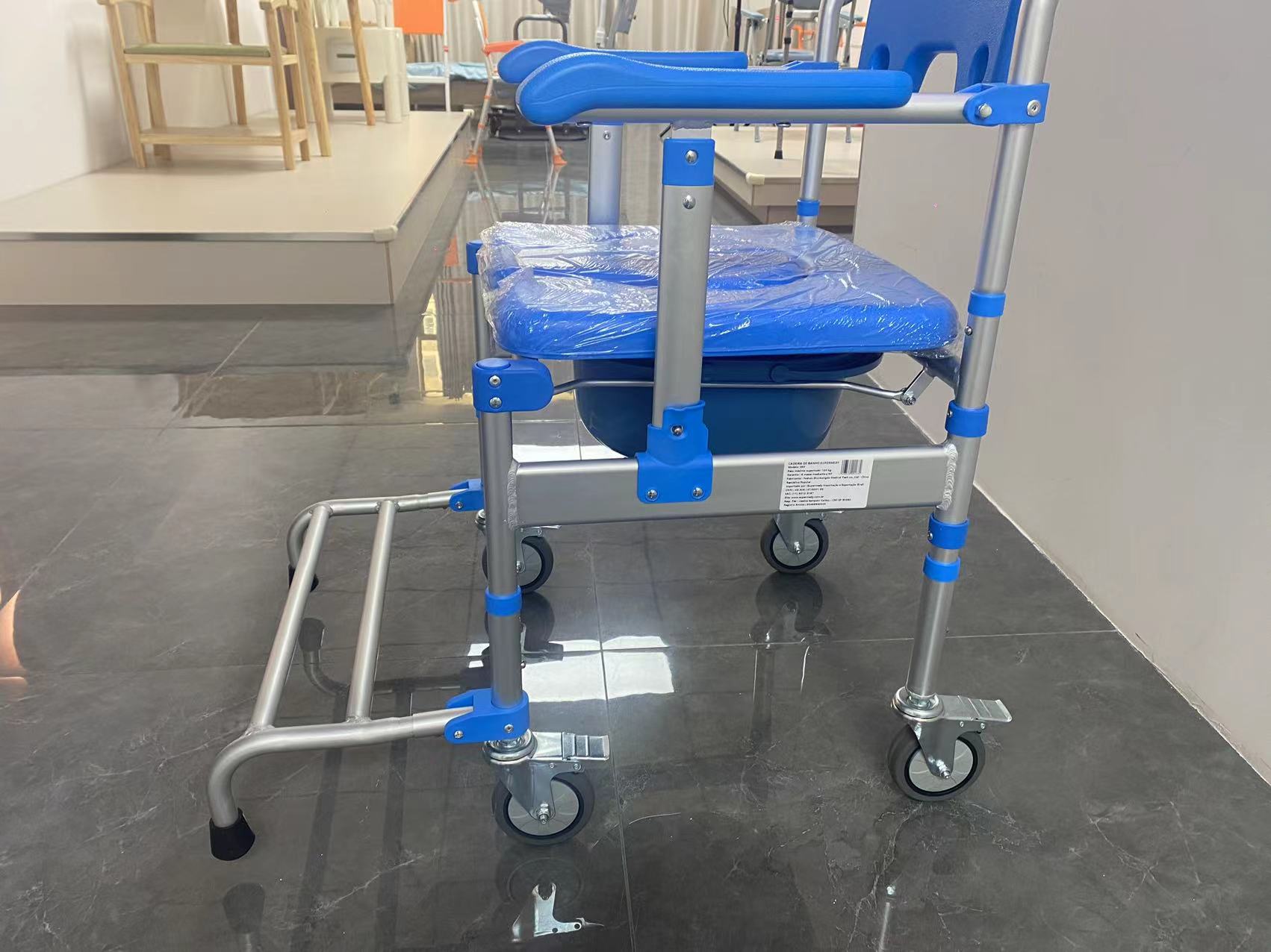 1.該產(chǎn)品采用高強(qiáng)度鋁合金、超承載、重量輕、便攜帶。加寬,加厚側(cè)管; 2.可折疊車架、收合快捷、扶手掀翻設(shè)計(jì)。有助于位移輔助功能,方便使用,省體積; 3.可選用標(biāo)配高強(qiáng)度可拆腳踏、可拆卸,翻轉(zhuǎn)設(shè)計(jì)。提高通過(guò)性及體驗(yàn)感; 4、可選配軟座和吹塑防水座板。滿足各使用人群需求??蛇x靠背墊; 5、可選配靜音輪及標(biāo)準(zhǔn)工業(yè)輪; 6、新型及外觀專利產(chǎn)品; 7、3檔高度可調(diào),座寬41cm、座高54-59cm、總高9