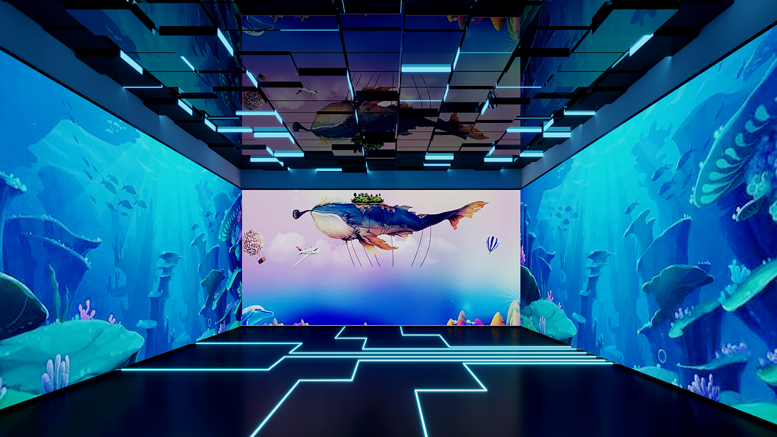 三維沉浸式情景互動教室,采用先進的聲光電多媒體技術(shù),將一間教室打造成一個虛擬的三維立體沉浸式情景教室,教室的場景可以根據(jù)融合投影進行切換,可以是街道,景區(qū),也可以是廚房,臥室;還可以是自然的森林或者多彩的海底世界;體驗者沉浸其中,還可以進行各種虛擬而又真實的互動體驗;讓特殊兒童更真實地體驗社會,體驗真實的生活環(huán)境,感受美麗的外部世界;同時也針對特殊兒童視聽覺、觸覺等各項感官能力進行綜合訓(xùn)練提高。