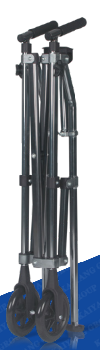 鋁合金氧化車架 一鍵折疊開關(guān)折疊順暢輕松方便 PVC可調(diào)節(jié)伸縮高度握把 工字折疊式減少占用空間位置 車架前腳配5寸腳輪助力滑動 后腳配高彈耐磨防滑膠腳