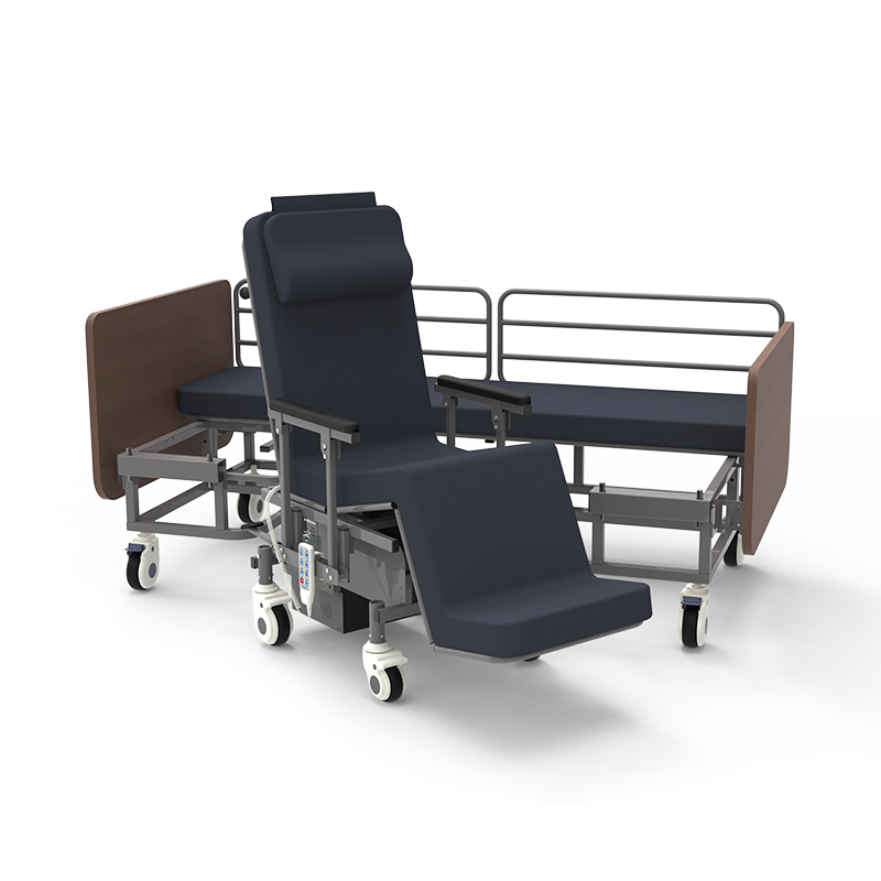 采用床椅分離及自動轉(zhuǎn)換的設(shè)計(jì)理念,床與輪椅自由切換,輕松實(shí)現(xiàn)體位轉(zhuǎn)移,既是多功能護(hù)理床,又是智能電動輪椅,極大的減輕了護(hù)工的勞動強(qiáng)度,同時擴(kuò)大了老人的自主活動空間;通過產(chǎn)品的體位變換功能,背部、腿部輕松升降,促進(jìn)肌體血液循環(huán),配以3D高分子床墊,減少長期臥床褥瘡發(fā)生率;內(nèi)置物聯(lián)網(wǎng)系統(tǒng),云端監(jiān)測、遠(yuǎn)程監(jiān)護(hù),不擔(dān)憂;人性化安全護(hù)欄,降低墜床風(fēng)險。