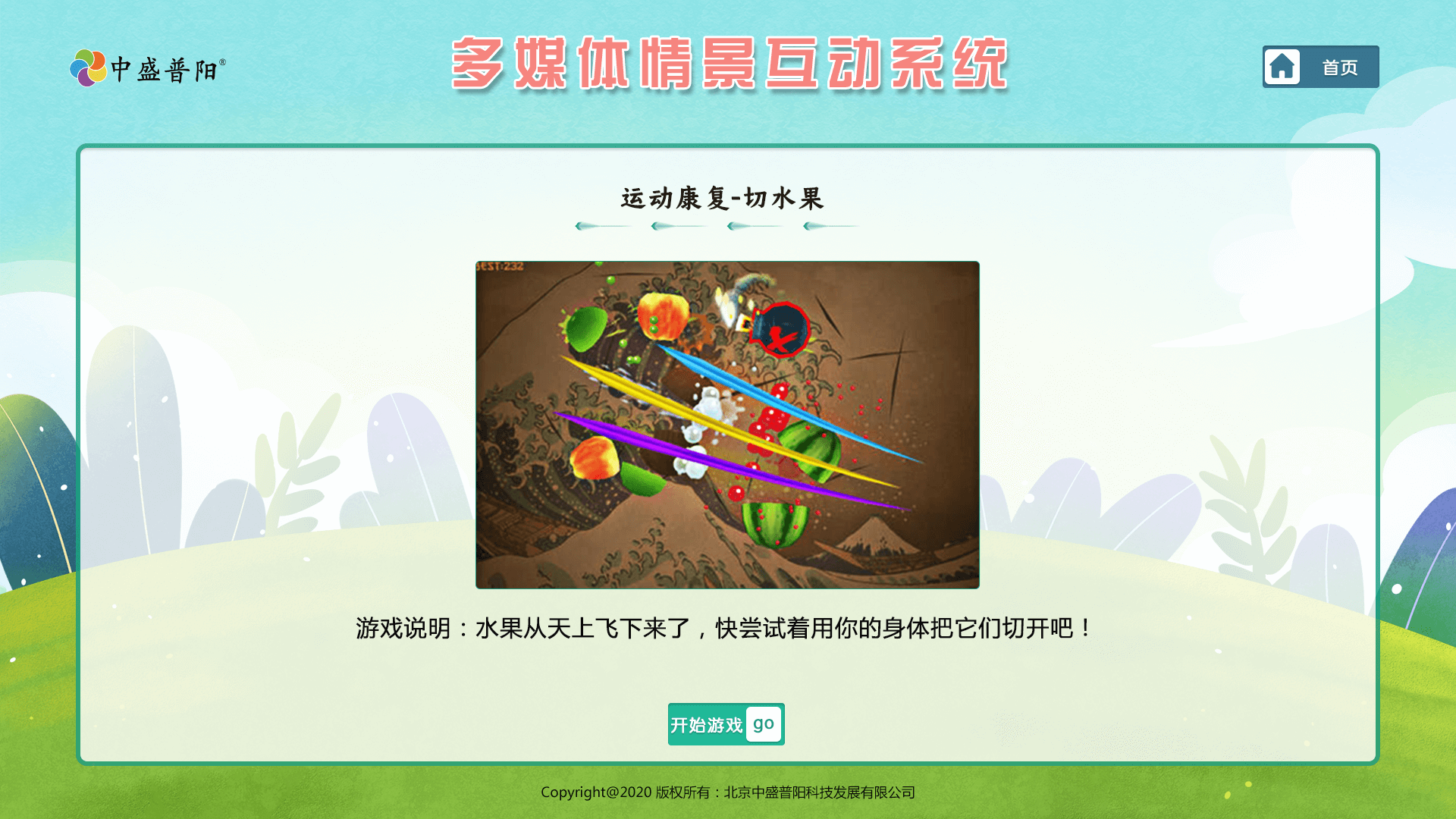 多媒體情景互動系統(tǒng)通過互動游戲的形式引導(dǎo)學(xué)生進(jìn)行訓(xùn)練,激發(fā)學(xué)生的興趣。系統(tǒng)采用了先進(jìn)的動作捕捉技術(shù),系統(tǒng)可不借助任何輔助設(shè)備直接在地面成像,通過人體的肢體動作實現(xiàn)實時動作捕捉,進(jìn)行情景互動訓(xùn)練。 系統(tǒng)包括了運動康復(fù)、認(rèn)知益智、情景體驗、趣味互動等八大類型,超過一百三十多個原創(chuàng)設(shè)計訓(xùn)練游戲,如:城市煙花訓(xùn)練游戲,當(dāng)兒童在投影區(qū)行走時,系統(tǒng)捕捉兒童腳部動作,地面會出現(xiàn)絢麗的煙花。