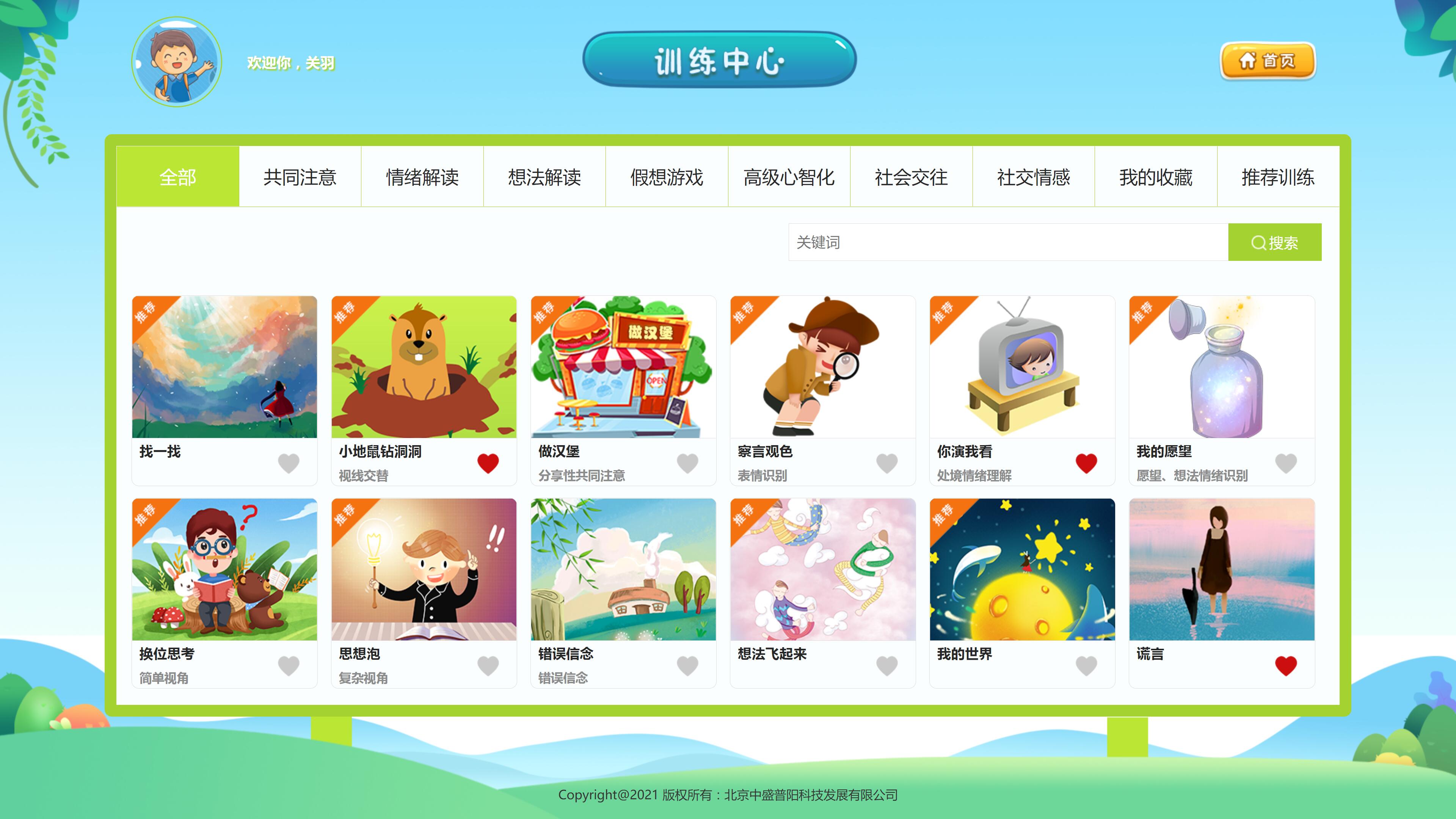 包含針對特殊兒童心智解讀與社會交往能力的評估與訓練內(nèi)容,軟件適用于認知能力達到兩歲以上水平的、心智化發(fā)展能力落后、社交及溝通能力較弱的兒童及自閉癥兒童。 系統(tǒng)集檔案管理、評估中心、訓練中心、個性化方案管理、資源中心、系統(tǒng)管理、個人中心、個性化方案等功能于一體。 軟件的評估部分提供心智解讀能力觀察評估表、社交技能評定量表等專業(yè)評估工具。