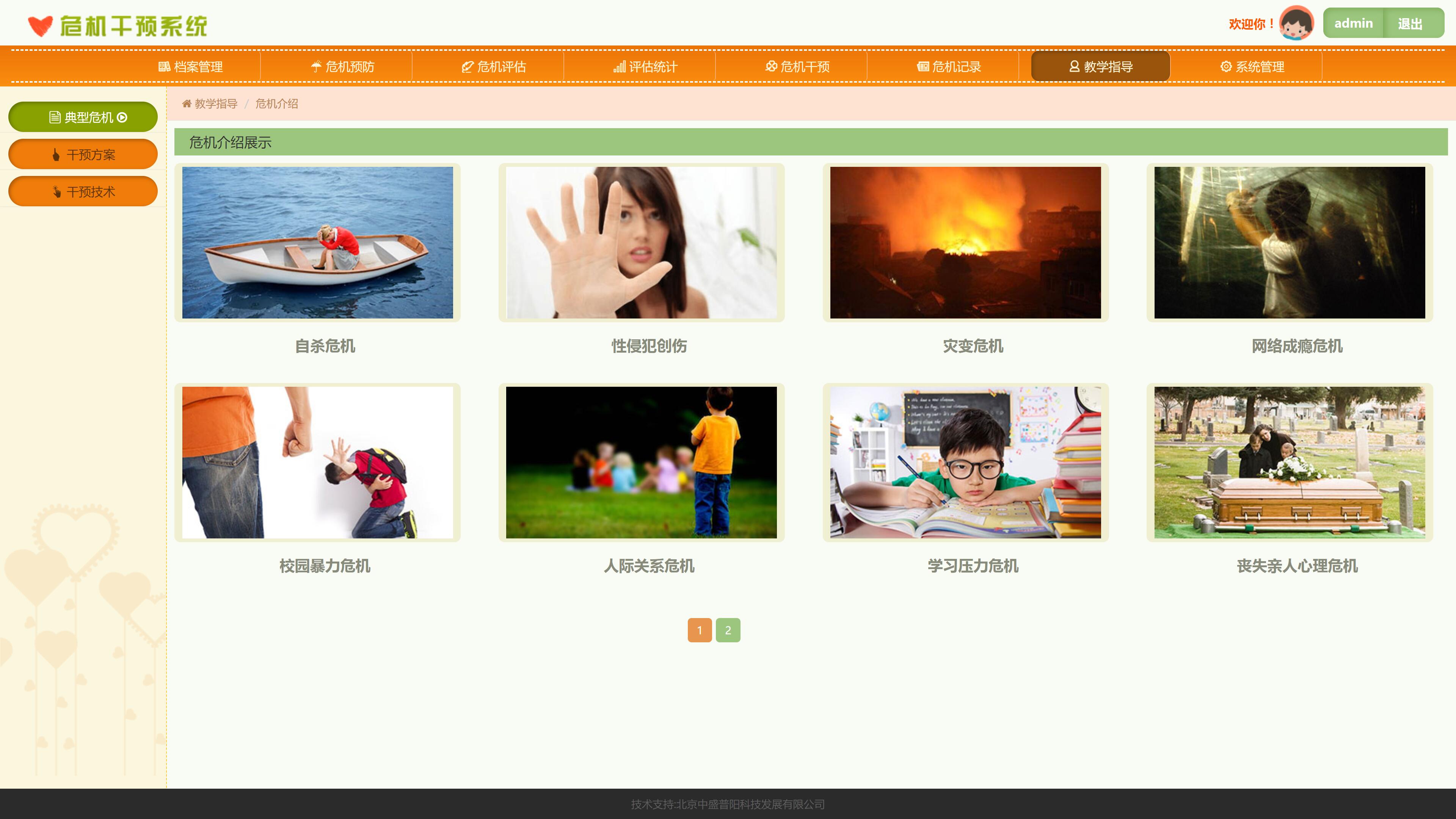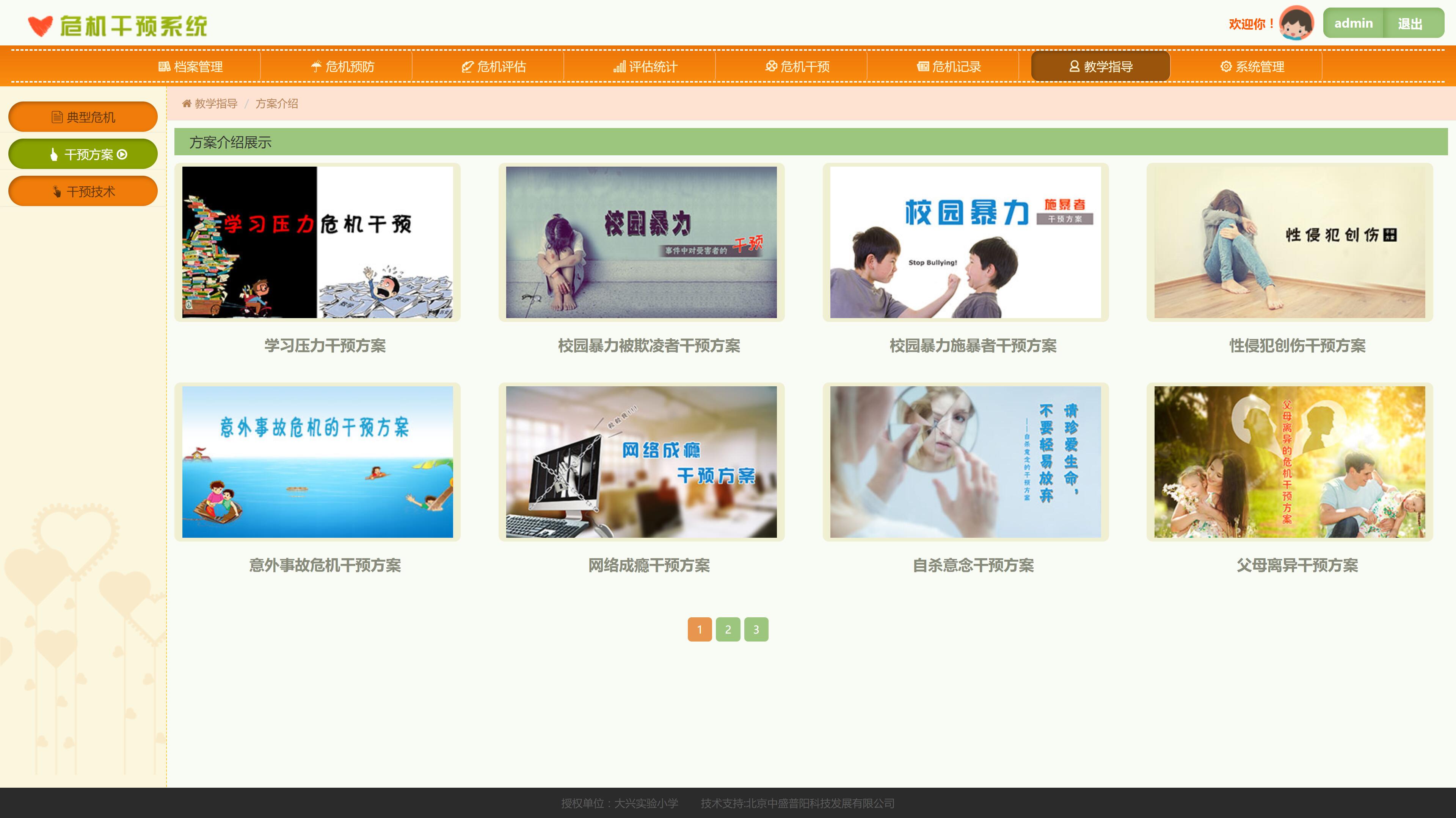 心理危機(jī)干預(yù)儀是一套集心理危機(jī)篩查、心理危機(jī)預(yù)防、心理危機(jī)干預(yù)三維一體的心理應(yīng)用產(chǎn)品。它以我國學(xué)校及社會(huì)上常見的自殺、校園欺凌、學(xué)業(yè)壓力、網(wǎng)絡(luò)成癮、意外傷害等十多種心理危機(jī)為主線索,以專業(yè)深入的心理輔導(dǎo)或治療方式進(jìn)行個(gè)體或團(tuán)體干預(yù)。心理教師或咨詢師通過使用系統(tǒng)的針對性干預(yù)方案,快速高效地幫助干預(yù)對象擺脫心理危機(jī)的困擾、恢復(fù)內(nèi)心平衡、提升心理健康水平。