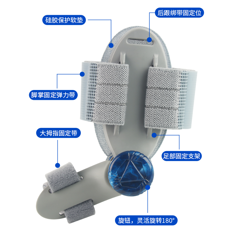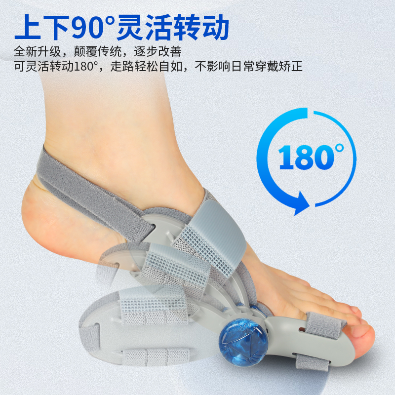 適應癥狀: 腳部拇指外翻,拇指囊腫,預防足部畸形惡化。 特點: 1.采用創(chuàng)新設計,可實現(xiàn)橫向180°旋轉(zhuǎn)及上下90°調(diào)節(jié)。 2.通過旋鈕輕松調(diào)節(jié)力度,提供無痛矯形體驗,日常使用更便捷舒適。 3.材質(zhì)透氣耐用,符合人體工學貼合足部自然曲線,確保穩(wěn)固舒適穿著體驗。