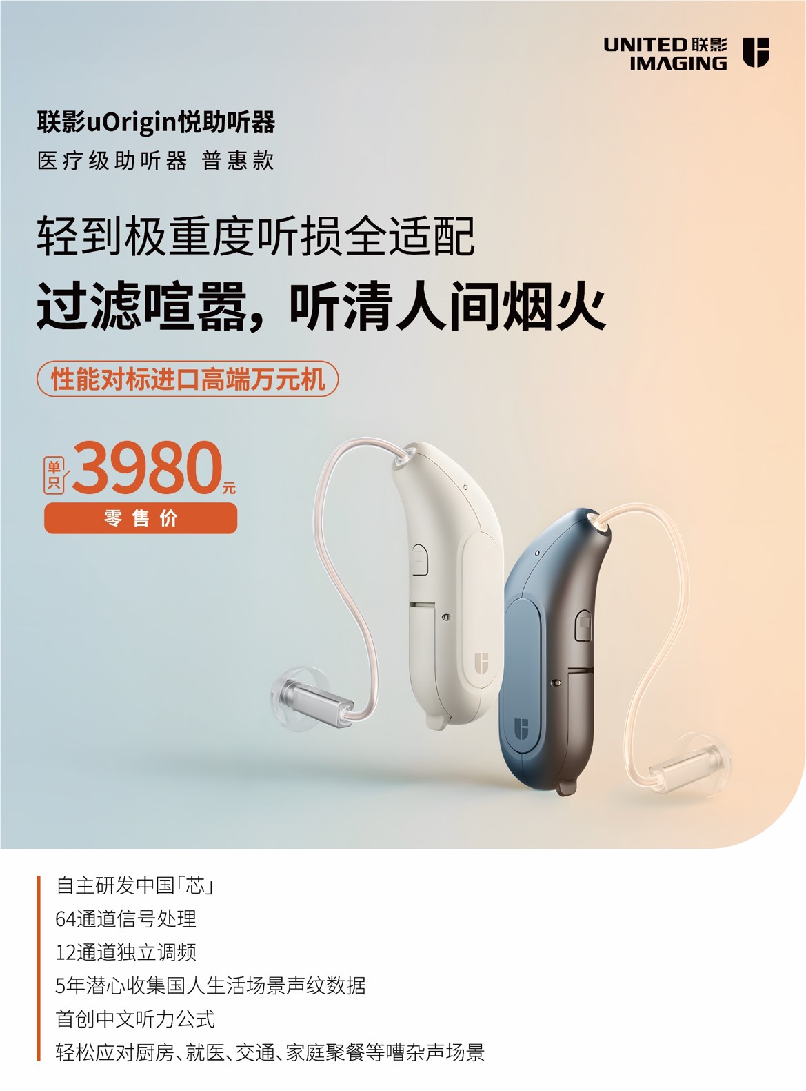 聯(lián)影“悅”助聽器,12通道可調(diào),專為所有聽力需求設(shè)計(jì),搭載極限降噪科技,即使身處喧鬧街道或擁擠地鐵,也能讓您輕松駕馭環(huán)境,對話清晰自在。強(qiáng)勁續(xù)航與快速充電技術(shù),保障您全天候持久暢聽,不斷電。更以卓越音質(zhì),帶來清晰、舒適、自然的聽覺體驗(yàn),為您開啟全天無憂的聆聽新境界。