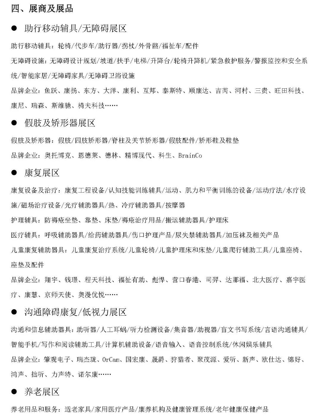 輪椅/助行輔具專(zhuān)區(qū) 聽(tīng)覺(jué)言語(yǔ)康復(fù)展區(qū) 視力障礙康復(fù)專(zhuān)區(qū) 養(yǎng)老用品和服務(wù)展區(qū) 假肢/矯形器專(zhuān)區(qū) 兒童康復(fù)專(zhuān)區(qū)