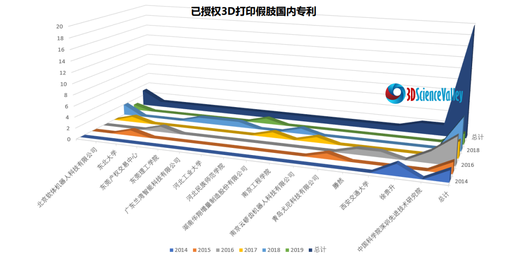 3D打印假肢國內(nèi)專利50個,其中已授權專利為20個。
