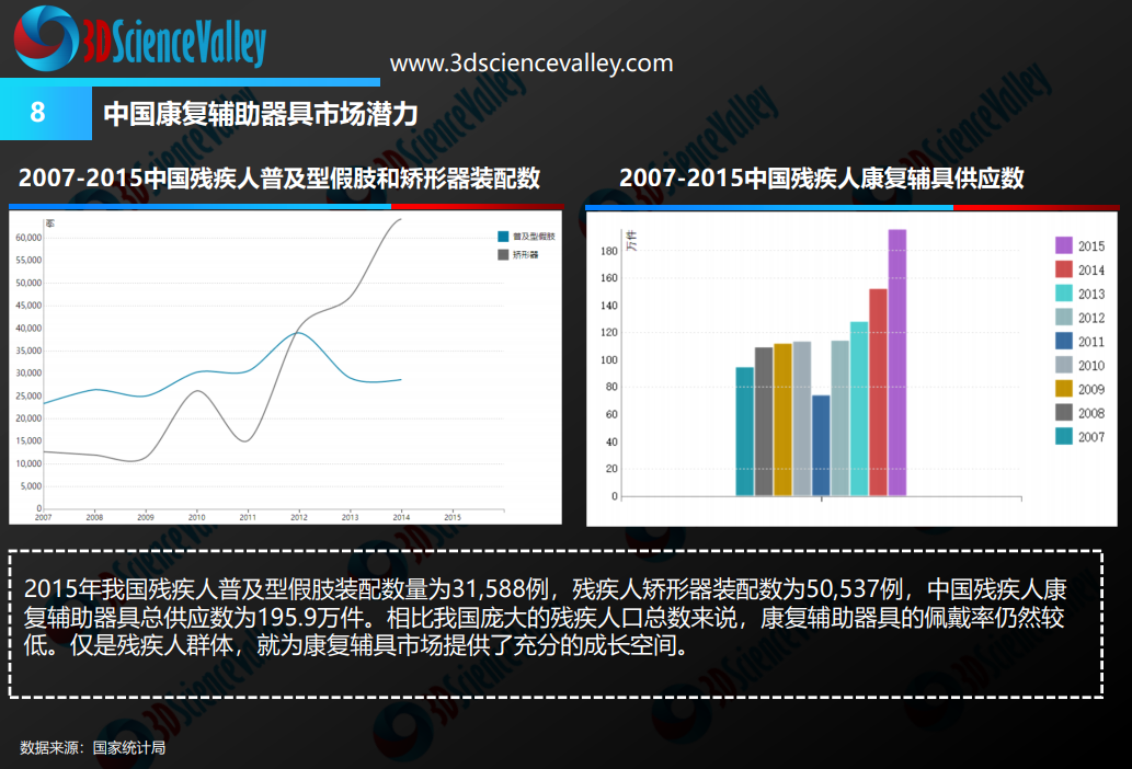 3D打印以其“增材制造”的優(yōu)勢,近年來在醫(yī)療器具的研發(fā)生產(chǎn)上贏得了國家政策上支持:2018年國家康復輔具研究中心牽頭申報的“仿生假肢手感知與控制的神經(jīng)信息解析和交互技術研究”以及“假肢矯形器的個性化設計與增材制造應用示范”兩項項目均獲批立項,中央財政資助經(jīng)費分別為2380萬元和931萬元。