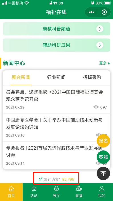 “福祉在線”小程序,是參展企業(yè)的線上展廳,可發(fā)布產(chǎn)品及活動(dòng)信息。