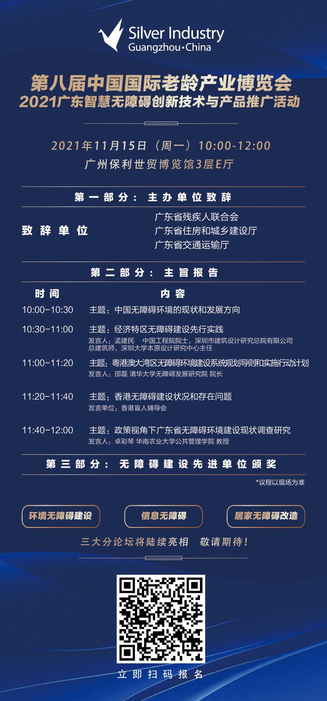展會同期舉辦“2021 廣東智慧無障礙創(chuàng)新技術與產(chǎn)品推廣活動”,環(huán)境無障礙建設、信息無障礙、居家無障礙改造三大分論壇將陸續(xù)亮相,歡迎報名參會,詳情如下: