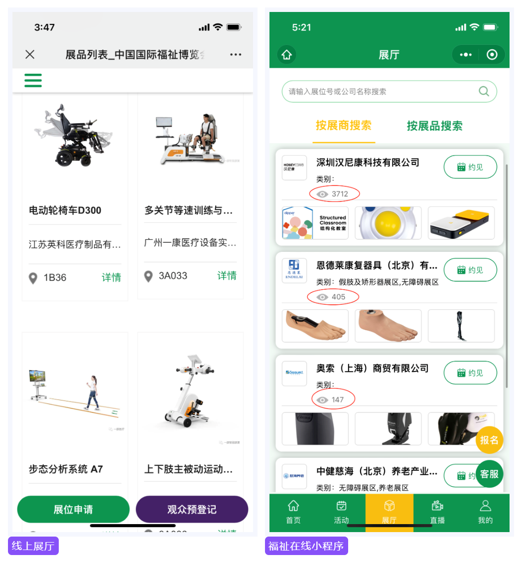 官方線上展廳及“福祉在線”小程序年訪問(wèn)量高達(dá)50萬(wàn)+,全面呈現(xiàn)嚴(yán)選福祉、康復(fù)行業(yè)好產(chǎn)品、新技術(shù), 幫助展商企業(yè)從行業(yè)中脫穎而出。