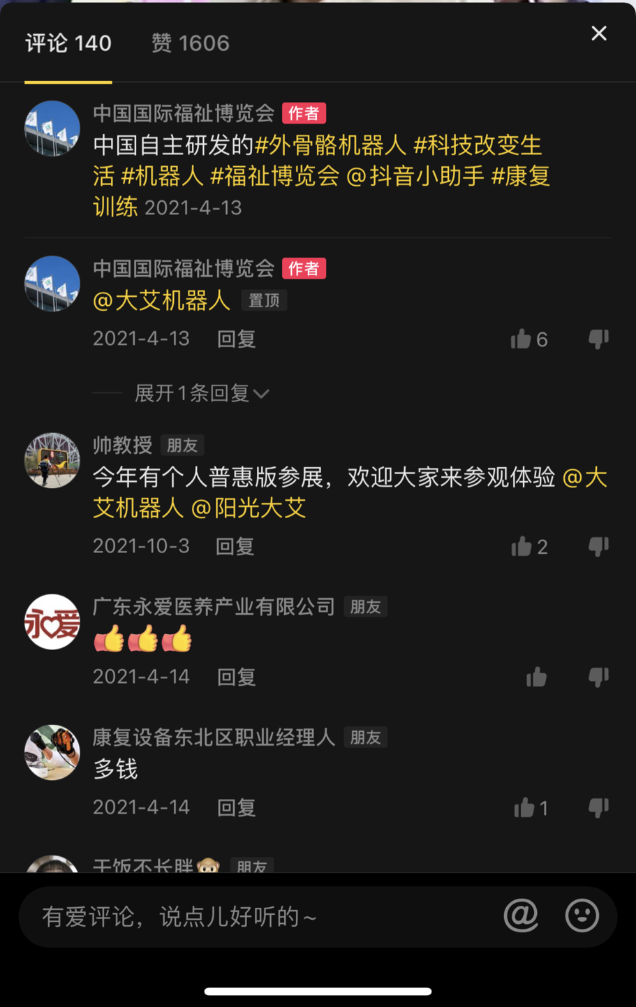 CR Expo通過(guò)抖音號(hào)發(fā)布大艾機(jī)器人部分新品,視頻瀏覽量達(dá)10萬(wàn)+,互動(dòng)量達(dá)200+,產(chǎn)品獲得了機(jī)構(gòu)用戶及個(gè)人用戶的關(guān)注。