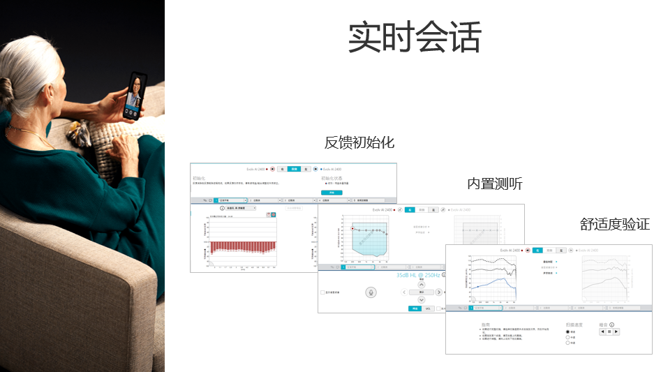 分享會(huì)上李伯陽指出目前我國聽力現(xiàn)狀的痛點(diǎn)和現(xiàn)狀,并基于此提出了“自調(diào)節(jié)+遠(yuǎn)程配驗(yàn)”技術(shù)的機(jī)遇和挑戰(zhàn)。同時(shí)也為我們分享了臨床案例分析,從而證實(shí)了該技術(shù)的可行性與優(yōu)勢,使聽力受損患者能夠足不出戶便能與調(diào)配師全程溝通,讓聆聽變得更具智慧。