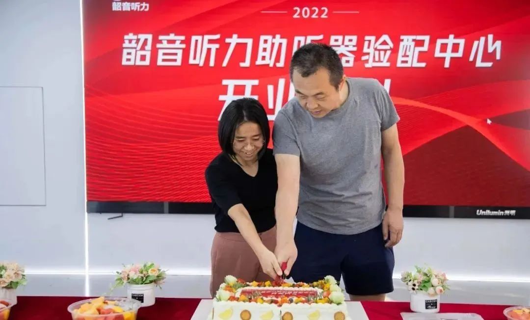 韶音科技CEO陳皞、韶音聽力總經(jīng)理廖風云共切蛋糕