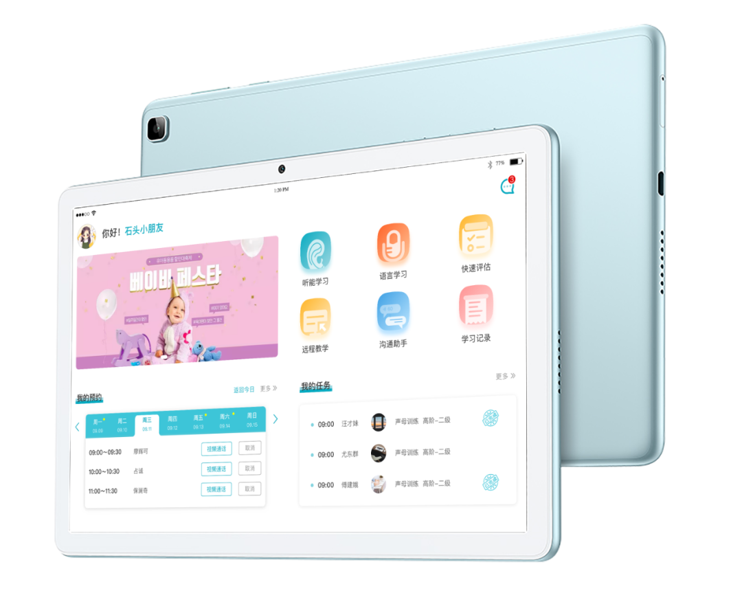 小南聽(tīng)說(shuō)集體康復(fù)系統(tǒng)由一臺(tái)主機(jī)(集體康復(fù)智慧屏)及6臺(tái)以上智能康復(fù)終端設(shè)備組成,適用于孤獨(dú)癥譜系障礙、言語(yǔ)語(yǔ)言障礙、聽(tīng)覺(jué)障礙認(rèn)知障礙等兒童的測(cè)評(píng)及康復(fù)訓(xùn)練。產(chǎn)品以兒童語(yǔ)言康復(fù)學(xué)、應(yīng)用行為分析 (ABA)、0-6歲兒童發(fā)展綱領(lǐng)為設(shè)計(jì)原則,基于智慧化評(píng)測(cè)體系,精準(zhǔn)快速定位問(wèn)題,將康復(fù)進(jìn)展可視化呈現(xiàn)。同時(shí)本產(chǎn)品采用場(chǎng)景化設(shè)計(jì),通過(guò)康復(fù)訓(xùn)練、游戲和智慧化康復(fù)管理等模塊,讓患者得到更好的干預(yù)效果。