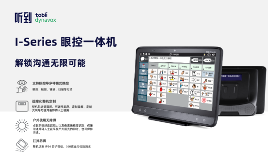 I-Series 眼控一體機(jī)是一臺可以完全用眼睛操作的Windows電腦,充分考慮不同用戶的需求,以幫助用戶實(shí)現(xiàn)操作電腦,自由表達(dá),采用全球領(lǐng)先的眼控平臺,可實(shí)現(xiàn)多模式聯(lián)合操控,并配合專為眼控所設(shè)計的AAC溝通軟件。