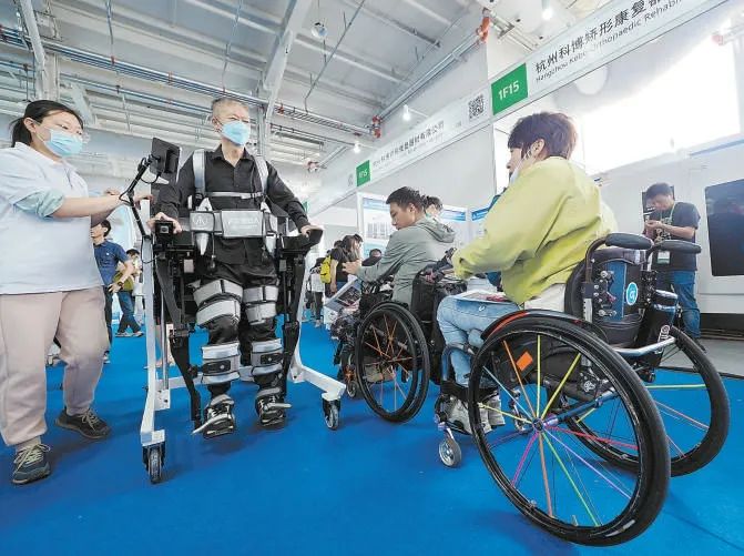 “站起來的感覺太好了。”來自山東的常女士體驗了一款專為殘疾人康復(fù)治療打造的外骨骼機(jī)器人,“我坐輪椅已有4年多了,平時只能靠床輔助站起來。”工作人員介紹,這款設(shè)備主要服務(wù)于下肢功能障礙患者,可為患者提供康復(fù)需要的多種步態(tài),引導(dǎo)患者塑造正確行走姿態(tài)。