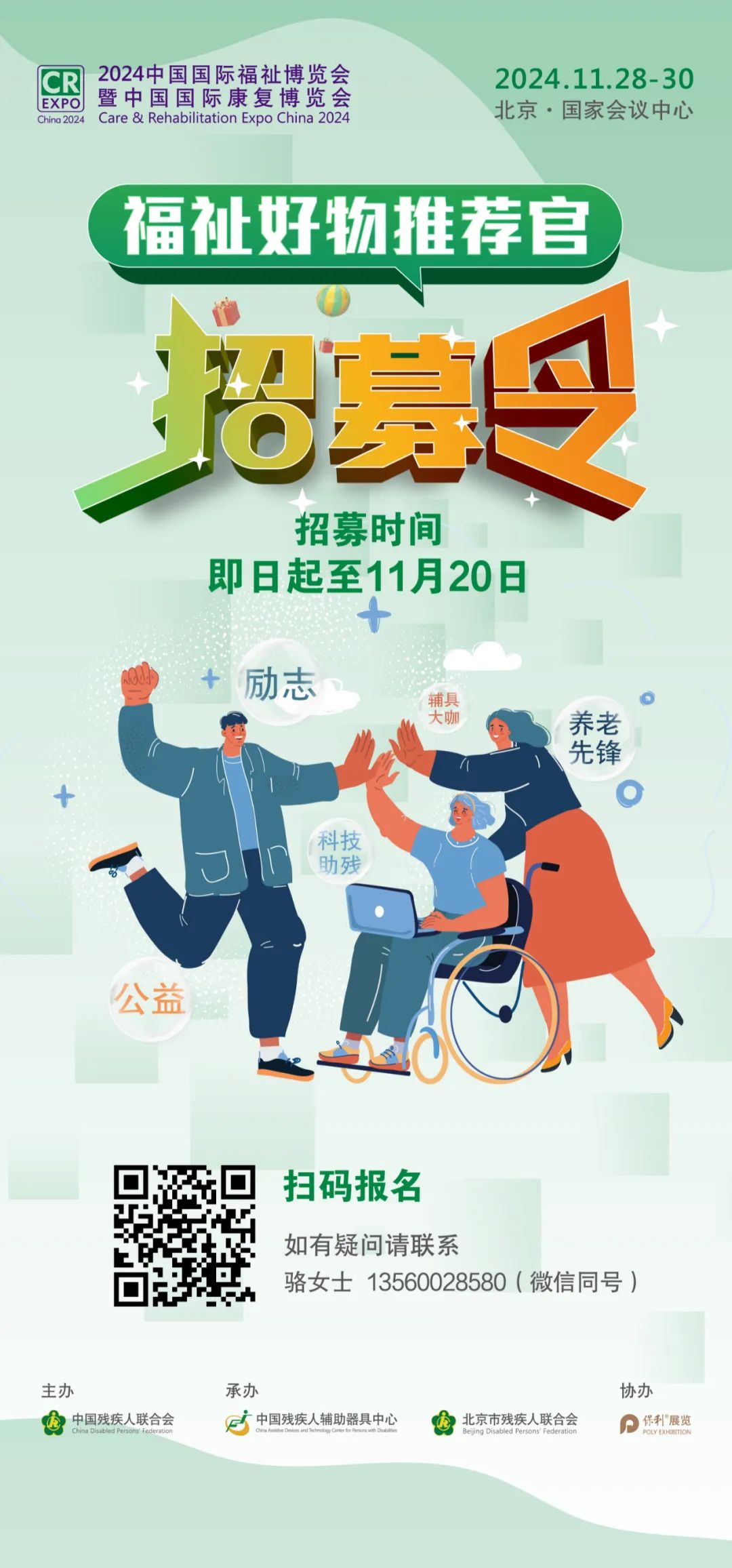 招募范圍:殘障人士、老年群體相關(guān)領(lǐng)域,如助行移動、老年輔具、假肢及矯形器、低視力/聽覺言語康復(fù)、無障礙生活、特殊教育、兒童康復(fù)等