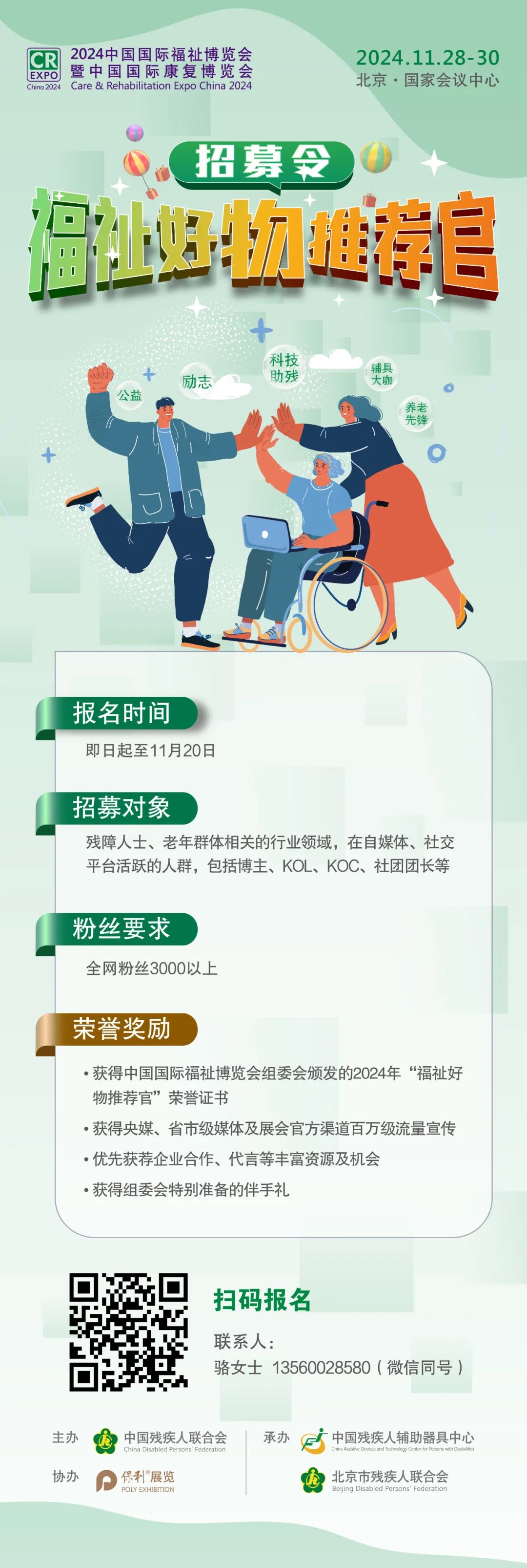 2024年11月28-30日,由中國殘疾人聯(lián)合會主辦,中國殘疾人輔助器具中心與北京市殘疾人聯(lián)合會承辦,保利展覽協(xié)辦的中國國際福祉博覽會暨中國國際康復博覽會(CR EXPO)將在北京·國家會議中心舉行。