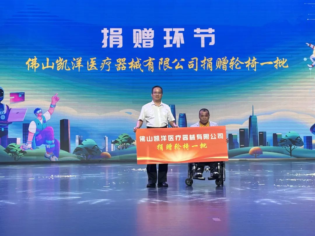今年在東莞市文化館星劇場(chǎng)舉辦的輔具捐贈(zèng)儀式上,佛山凱洋醫(yī)療器械有限公司為殘疾人捐贈(zèng)輪椅一批,東莞市殘聯(lián)副理事長(zhǎng)王錦繡為其頒發(fā)了牌匾。
