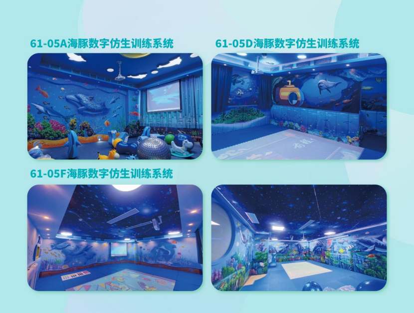 61-05系列海豚數(shù)字仿生訓(xùn)練系統(tǒng)是基于數(shù)字化仿生高頻海豚音為大環(huán)境大背景的綜合視聽(tīng)系統(tǒng),核心專利技術(shù)為“海豚仿生信號(hào)發(fā)生器”,該發(fā)生器通過(guò)數(shù)字仿生學(xué)技術(shù)模仿海豚等人類親和動(dòng)物在不同生理狀態(tài)下發(fā)出的對(duì)人體尤其是中樞神經(jīng)系統(tǒng)有協(xié)調(diào)和促進(jìn)功能的聲源信號(hào)。通過(guò)海豚仿生學(xué)有效速率轉(zhuǎn)換,通過(guò)輸出控制臺(tái)在特定的視聽(tīng)環(huán)境中隨機(jī)變頻轉(zhuǎn)換成人類可聽(tīng)到的頻率進(jìn)行投放,通過(guò)結(jié)合多媒體數(shù)字投影、數(shù)字調(diào)制燈光組成沉浸式的視聽(tīng)覺(jué)整合環(huán)境,讓受訓(xùn)者在“沉浸式”環(huán)境中以安寧、放松、平靜的狀態(tài),接受視、聽(tīng)、觸覺(jué)等多種視聽(tīng)感知覺(jué)整合刺激,以達(dá)到提升康復(fù)訓(xùn)練的目的。