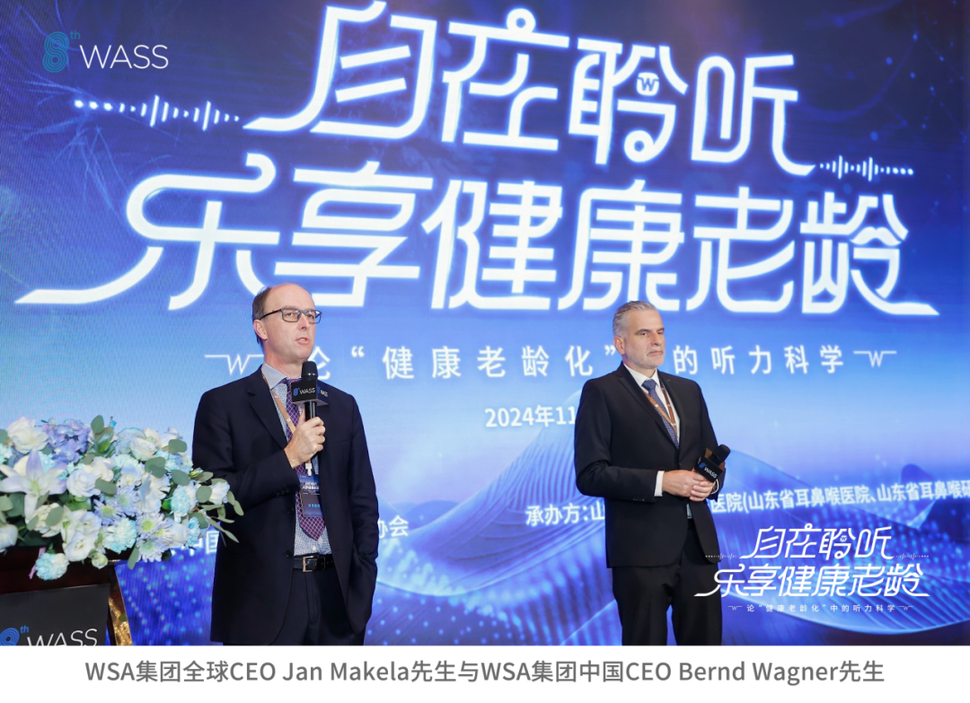 上午9時(shí)整,會議正式開始,承辦方代表山東省耳鼻喉醫(yī)院名譽(yù)院長王海波教授、主辦方代表中國電子音響行業(yè)協(xié)會助聽行業(yè)分會會長黃治物教授先后講話致辭。隨后,WSA集團(tuán)全球CEO Jan Makela先生與WSA集團(tuán)中國CEO Bernd Wagner先生致大會開幕詞,第八屆WASS交流會自此正式拉開帷幕。