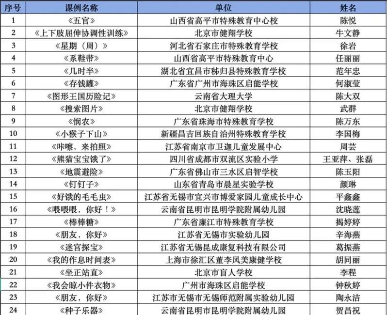 公布第一屆孤獨癥教育教學征集優(yōu)秀組織單位,優(yōu)秀、創(chuàng)新和鼓勵論文名單;公布第一屆孤獨癥教學案例優(yōu)秀組織單位,優(yōu)秀、創(chuàng)新和鼓勵課例名單