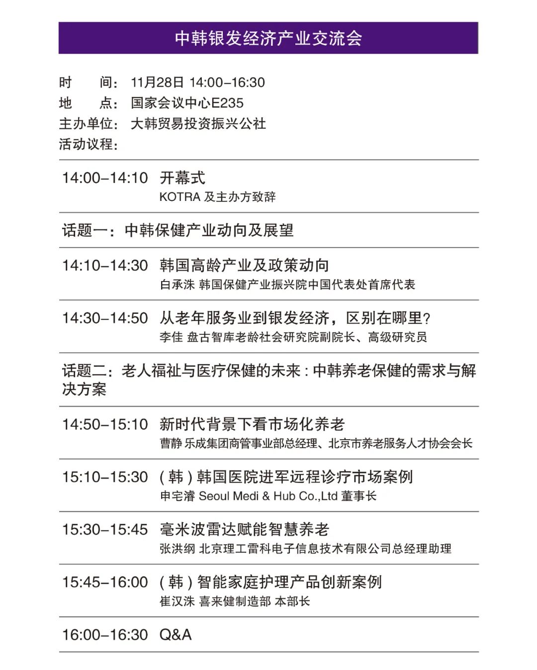 下午參加中韓銀發(fā)經(jīng)濟(jì)產(chǎn)業(yè)交流會(huì),了解中韓兩國(guó)應(yīng)對(duì)老齡化的策略,解讀中韓兩國(guó)老年市場(chǎng)需求,借鑒成功經(jīng)驗(yàn)。