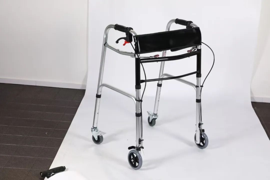 2.可折疊車架、收合快捷、扶手掀翻設(shè)計。有助于位移輔助功能,方便使用,省體積;