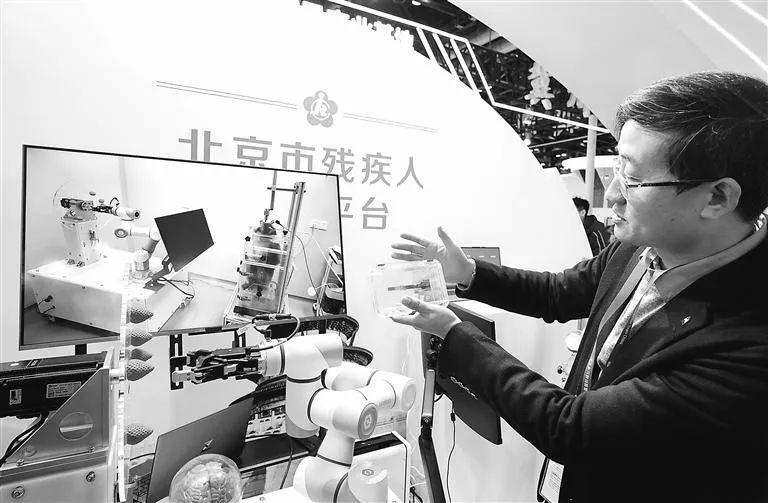 圖為在2024中國國際福祉博覽會北京市殘聯(lián)展位上,北京芯智達神經(jīng)技術(shù)有限公司工作人員介紹基于腦機接口的“北腦一號”和“北腦二號”主動康復(fù)系統(tǒng)。本報記者 洪星攝