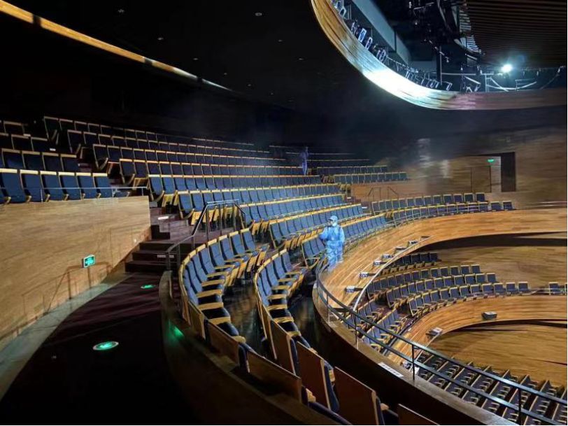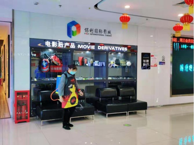 保利影院對(duì)公共區(qū)域進(jìn)行消毒