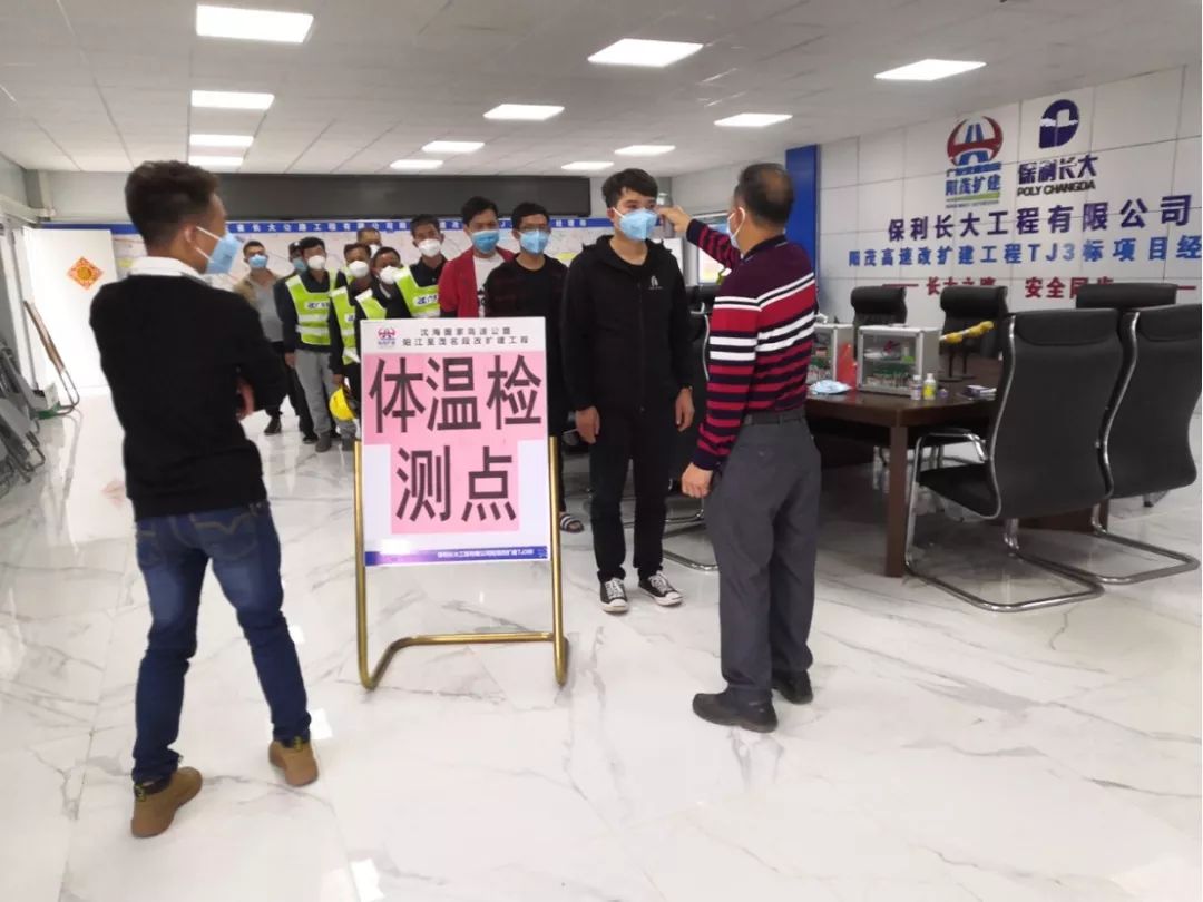 保利長(zhǎng)大陽(yáng)茂TJ3標(biāo)進(jìn)行體溫檢測(cè)和發(fā)放一次性醫(yī)用口罩