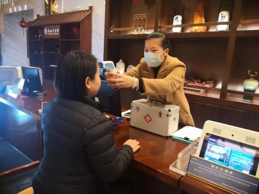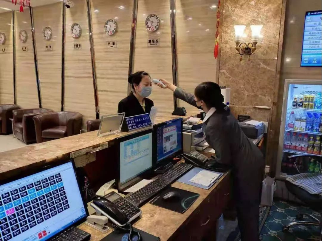 保利酒店對(duì)入住客人進(jìn)行體溫檢測(cè)