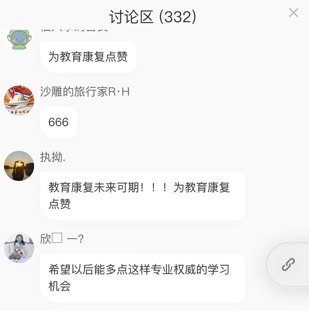 圍繞“康教結(jié)合,共促特殊兒童健康發(fā)展”這一主題,來(lái)自醫(yī)院、特教學(xué)校、特教管理部門和高校的四位嘉賓異地連線直播,超過(guò)5000人次同時(shí)觀看討論,可謂人氣爆棚,精彩不斷。