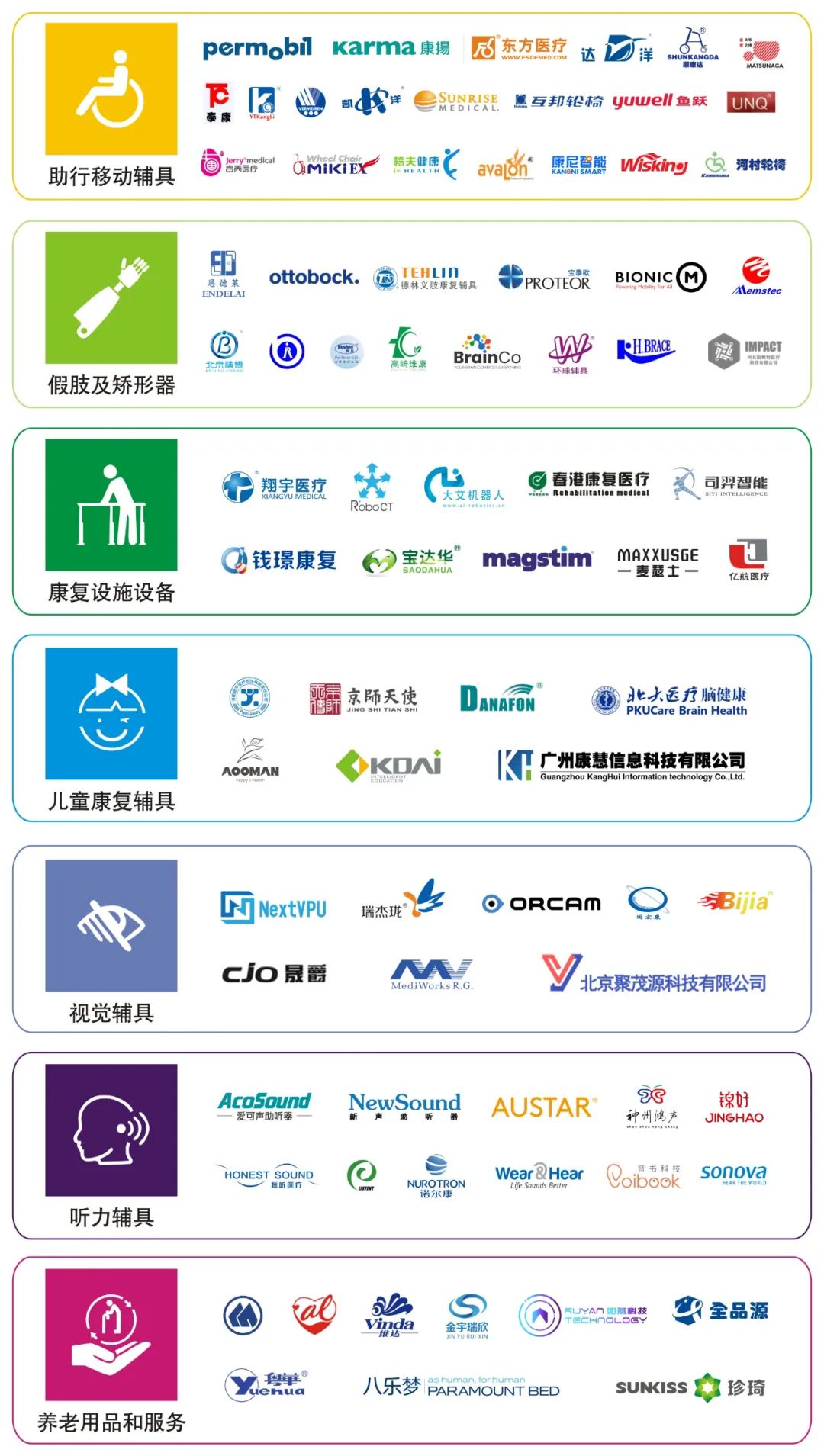 翔宇、錢璟、程天科技、大艾、福祉有助、彪悍、億航、營口春港、寶達華、司羿等康復設施設備廠商;