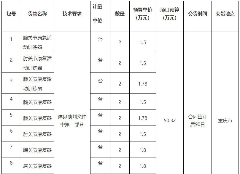 項目名稱:重慶市某單位康復(fù)訓(xùn)練器一批招標(biāo)公告(2022-JL13(03)-W10327)